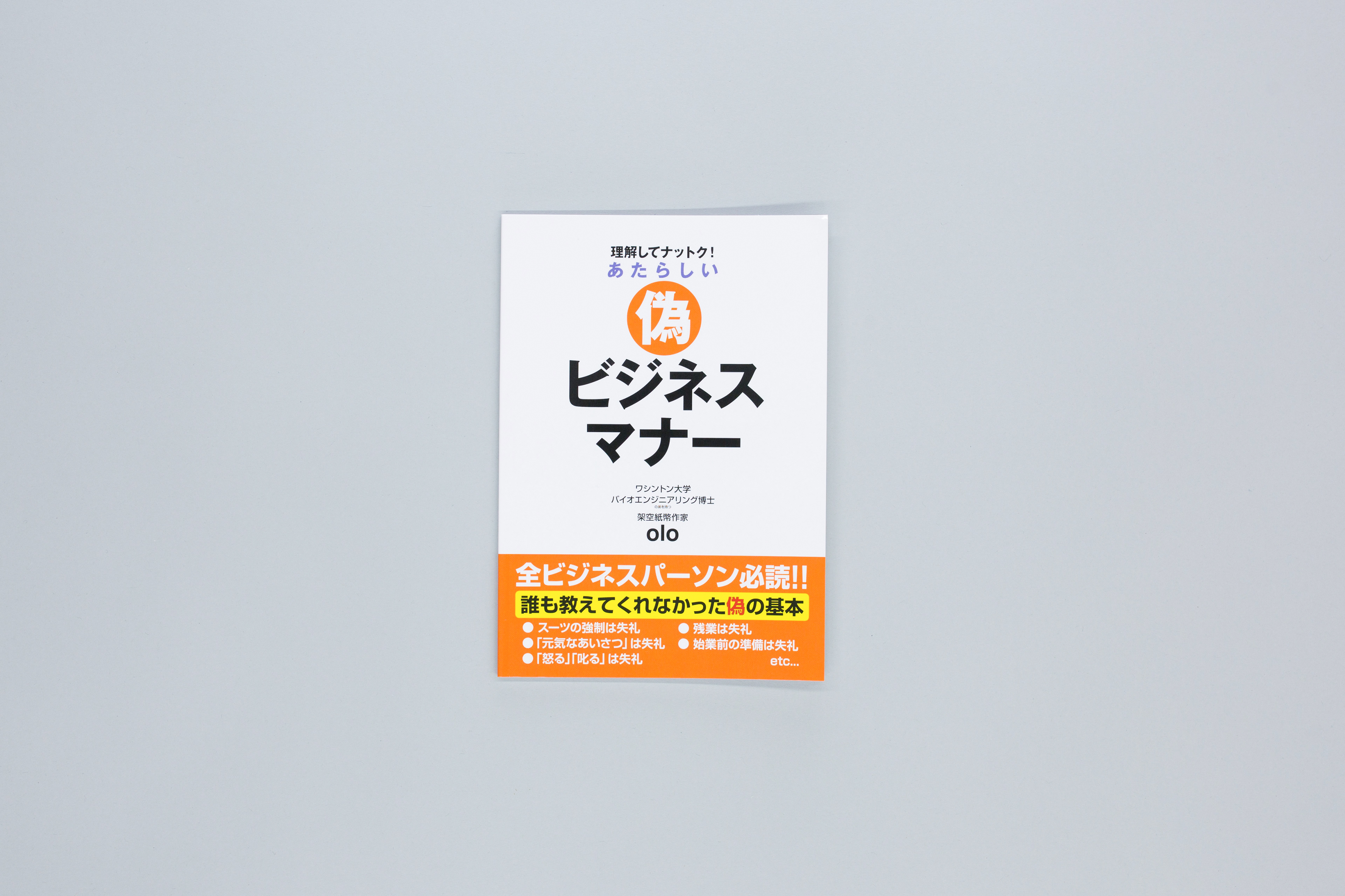 本物の媒体ような体裁で、それなりの根拠を示しつつ全くの偽情報を表示した場合、明らかに偽情報と分かるものでも人はそこに真実味を感じてしまうのではないか?という実験。今回はビジネスマナーを題材に制作。世間一般で「正しい」「好ましい」とされるビジネスマナーとは真逆の内容を、それっぽく見える根拠を示しつつビジネス書籍のようにまとめた。